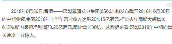 凈利增長30倍!說說漢能中報(bào)背后的故事