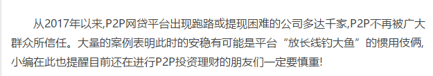 從2017年以來,P2P網(wǎng)貸平臺出現(xiàn)跑路或提現(xiàn)困難的公司多達千家,P2P不再被廣大群眾所信任。大量的案例表明此時的安穩(wěn)有可能是平......